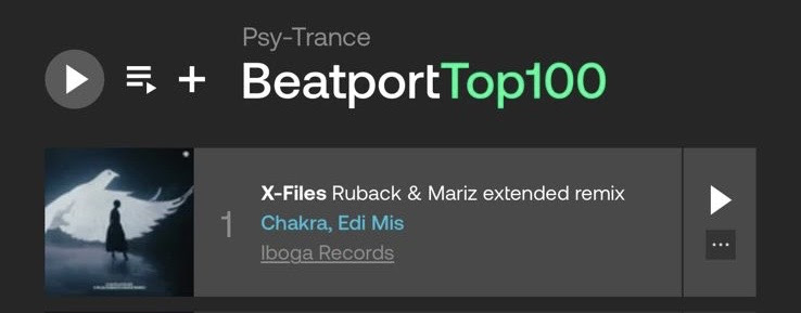 Em uma conquista muito simbólica para a carreira, RUBACK e Mariz alcançam um feito inédito ao chegar ao top #1 de Psy-Trance no Beatport, emplacando o remix de “X-Files”, original de Chakra & Edi Mis, feito e lançado pela Iboga Records, no chart (ouça aqui).